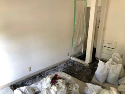 既存の床が上がっている部分を解体し、配管状況を確認後、レイアウトを確定します。