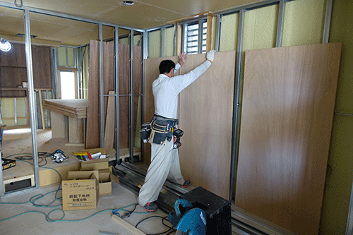 店舗内装工事日記町田 美容室 内装工事9 いよいよボード貼りです。 下地が必要な部位は 先にベニヤを貼っていきます。 少しずつ空間が形づくられていきます。 来週からはいよいよ仕上げ工程に移ります。 町田 美容室 内装工事8 町田 美容室 内装工事10