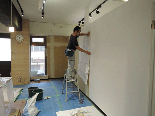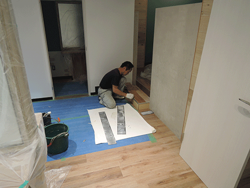 昨日はクロスや床材の貼り付けを行いました。