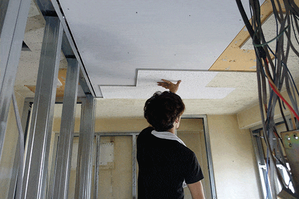 本日は壁や天井の下地を貼り進め、大方貼り終わりました。