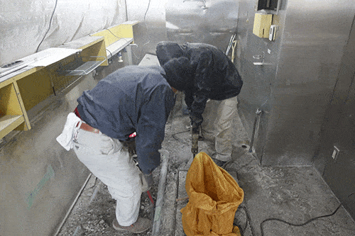 店舗内装工事日記相模原 ラー油蕎麦店 内装工事 1 いよいよ工事が始まりました。 8日に撤去工事、昨日より厨房給排水部のコンクリートのハツリを行いました。 本日は、引き続き厨房エリアのハツリと客席エリアの既存床材の剥がし 厨房エリアの既存ガス管(不使用分)の端末処理を行いました。 明日もハツリ工事が続きます。 戸越銀座 シューマイ店 内装工事 8 戸越銀座 シューマイ店 内装工事 9
