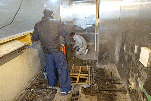 本日は厨房エリアの給排水配管でハツった部位の、生コン打設を行いました。