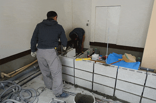 土曜日に、厨房カウンター部のブロック積みを行い