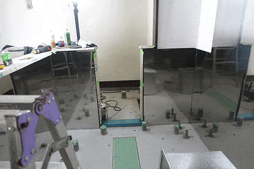 本日は、厨房内の壁のステンレス貼りと