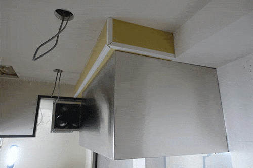 換気設備のフードの取付けを行いました。