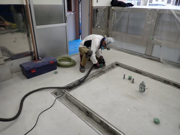 店舗内装工事日記弘明寺 精肉店 内装工事 10 年明け最初の工事は、照明の器具付けと 床の塗装になります。 熱に強い、強度のある材料を塗る予定ですが 下地にしっかり食いつくように、床の端部には 溝を彫りこんでいきます。 弘明寺 精肉店 内装工事 9 弘明寺 精肉店 内装工事 11