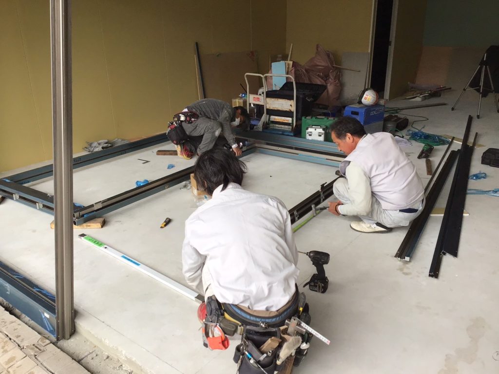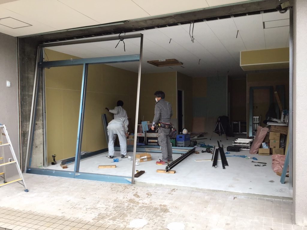 店舗内装工事日記横浜市磯子区介護オフィス内装工事 10 本日はフロントサッシの建て込みを行ないました。 今までは屋外に開放されていた状態でしたが サッシが建てこまれると、やっと屋内という感じがしてきます。 明日はガラスを嵌め込みます。 横浜市磯子デイサービス内装工事 17 玉川学園前 惣菜店内装工事2