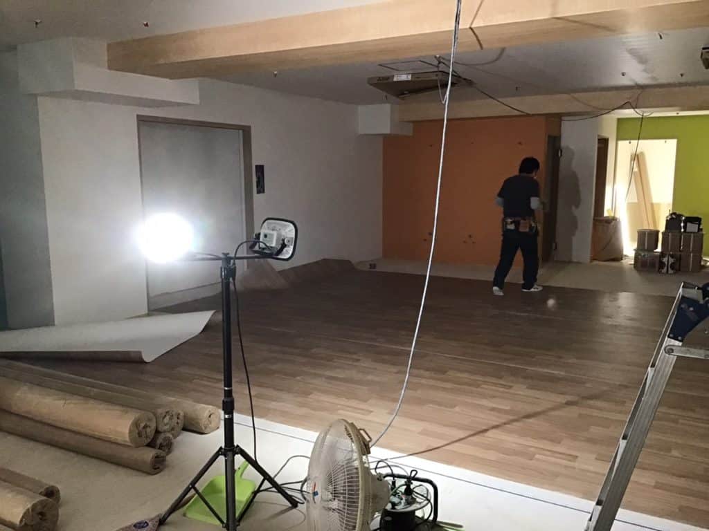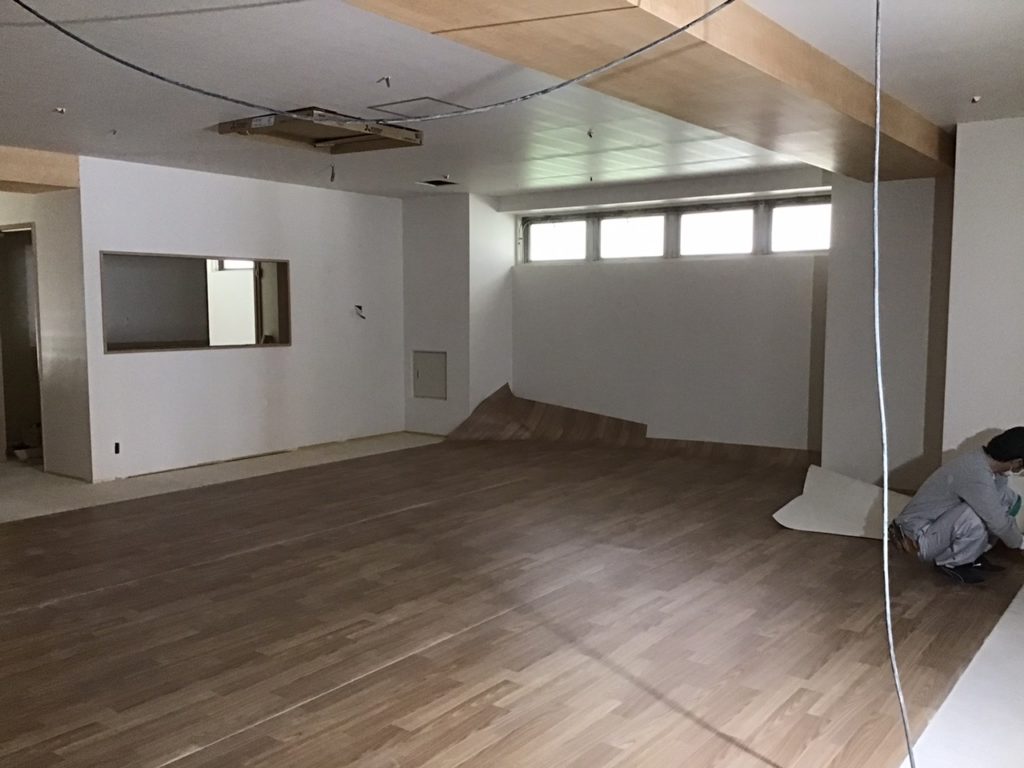 本日より床のシート貼りの工事に移りました。