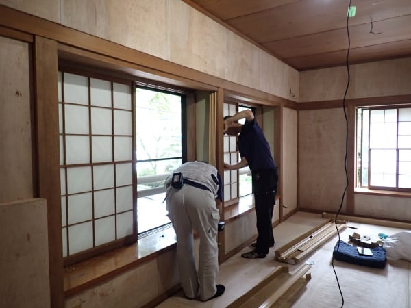 店舗内装工事日記深大寺 蕎麦店 改装工事 4 昨日で木工事も無事に終了し、本日より塗装工事に移りました。 既存の敷目天井はクリア塗装とし、壁面は白系で塗装します。 並行して、出窓に内窓を取り付けました。 深大寺 蕎麦店 改装工事 3 深大寺 蕎麦店 改装工事 5