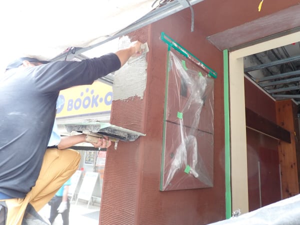 店舗内装工事日記町田 和菓子店 改装工事 3 解体も大方完了し、本日は店舗部床の床材剥しと 店舗正面外壁の塗壁ジョリパットのパターン替えの為の モルタル下地づくりを進めております。 まだまだ梅雨が明けないので、梅雨の合間を縫って 進められる工程は進めておく感じです。 暑いとはいえ、早く梅雨が明けてくれるといいのですが… 町田 和菓子店 改装工事 2 町田 和菓子店 改装工事 4