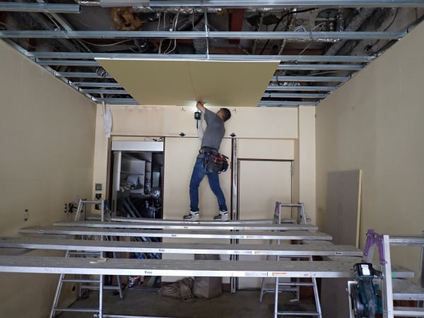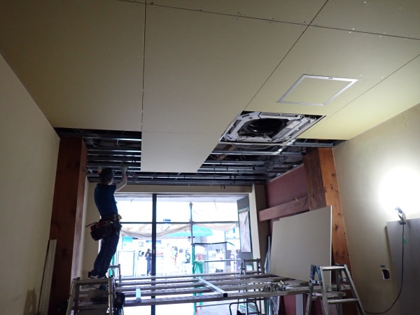 店舗内装工事日記町田 和菓子店 改装工事 4 今回は、売り場の天井ボードを貼り替える計画で 既存の軽鉄を整えながら、新たに石膏ボードを貼っていきます。 明日は、2Fの事務所内のボード補修を進めます。 町田 和菓子店 改装工事 3 町田 和菓子店 改装工事 5