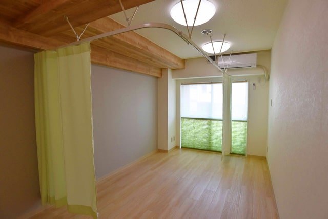 事務所仕様で暗かった入口部分には照明を追加し、個室は患者様がまぶしく感じない位置に調光調色の照明器具を配置しました。ベットや機材が入ると雰囲気が出ますので、また機会があれば写真を更新しますね。