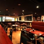 お店のテーマカラーのワインレッドに合わせて、天井や家具の色を