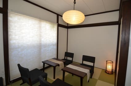 木部の塗装や畳や照明を変えて和モダン風にし、靴を脱いで個室としても利用できるようにしました。