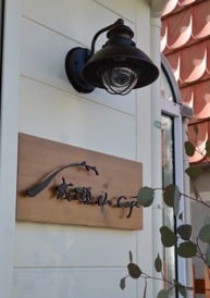施主様直筆の毛筆のロゴをアイアンでつくり木板に打ち付けた看板です。