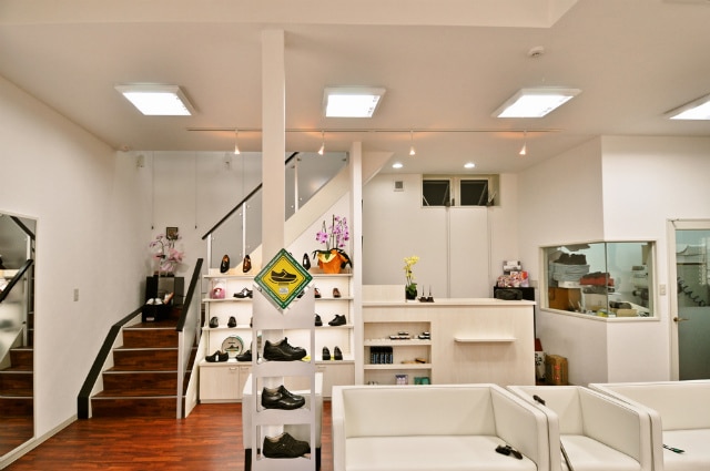 店舗、物販店相模原 コンフォートシューズ ワカヤマ靴店 新築の店舗併用住宅の店舗部分を手がけました。足を細かく計測しカウンセリングなども行いながら、ぴったりあう靴を選んで調整してくれる靴屋さんです。調整用の工房もあります。2フロアが売り場になっており、吹き抜けを望む二階はフットケアとお子様用の靴のコーナーになっています。靴を並べる什器は商品の引き立て役なので、おとなしい白の木目柄にしています。 物件内容:鉄骨造 124㎡ /37坪 竣工:2008年8月 新丸子 BJカフェ 横浜 CAFE KANMURIBANE(かんむりばね)