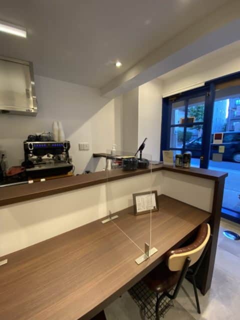 お一人で切り盛りされるので、カウンター内はメインのエスプレッソマシンの他は軽食対応できる最小限の厨房機器でスペースを抑えてあります。