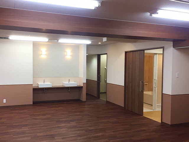 介護・医療施設デイサービスセンター ひばり三軒茶屋 長年使用して給排水部分の水漏れと段差やスロープが目立っていたデイサービスを改装しました。 これまではトイレも浴室も勾配が強いスロープを上がらなければ入れませんでしたが、改装後はスタッフルーム以外の利用者様が使用するフロアは全てフラットになりました。 改装後は和風で木目の暖かみを感じるモダンな内装になりました。 BEFORE AFTER 物件内容:RC造 階建1階部 142.78㎡/43.19坪 竣工:2017年12月 干し野菜 ふるさとがいっぱい