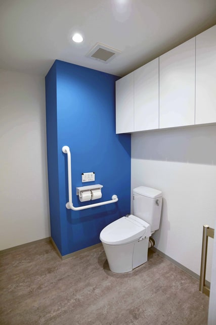 こちらの物件には、床が上がっている既存のトイレが付いていましたが、デイサービスなので段差を極力抑えた作りにする必要がありました。