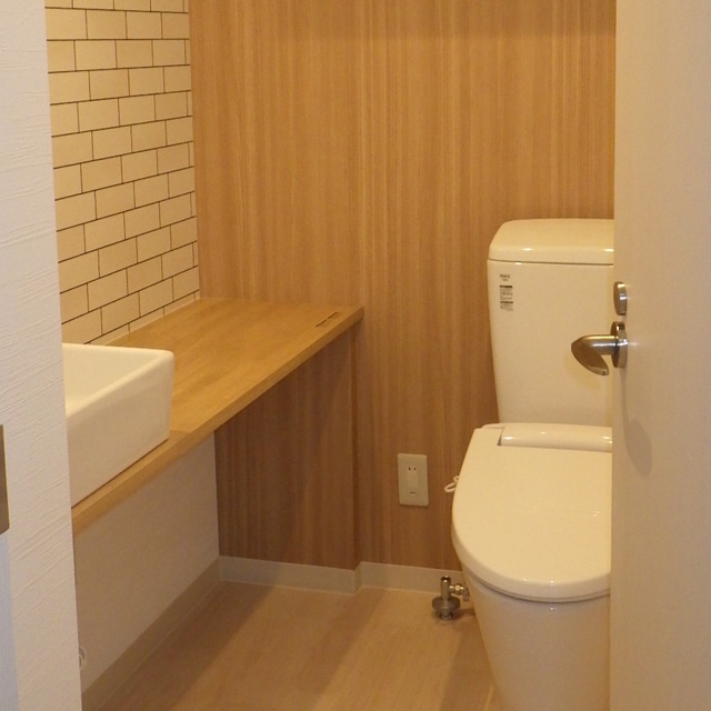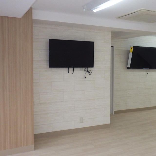 神奈川県横浜市中区 本牧通り沿いの若武者ケア中事業所の設計施工を行いました。間仕切りのない店舗だったので、給湯室、相談室、男女別更衣室をレイアウトしました。また、トイレが1箇所しかなかったので、床上げをして男女別に増設しました。段差ができるデメリットがあるので、可能な限り床上げしないで増設したいのですが、床上げをすることによって、レイアウトの幅が広がり使い勝手良く設計できるメリットもあります。今回はオフィスなので問題ありませんが、不特定多数の方が使う場所や障害のある方が使うトイレは、床上げをしないで作れるかどうかは、物件を決定する上で大事な点になります。また、将来的に訪問介護事業所と居宅介護事業所の両方が入る予定なので、島が干渉せず2納まるように机をレイアウトし、それぞれの壁にテレビを設置しています。